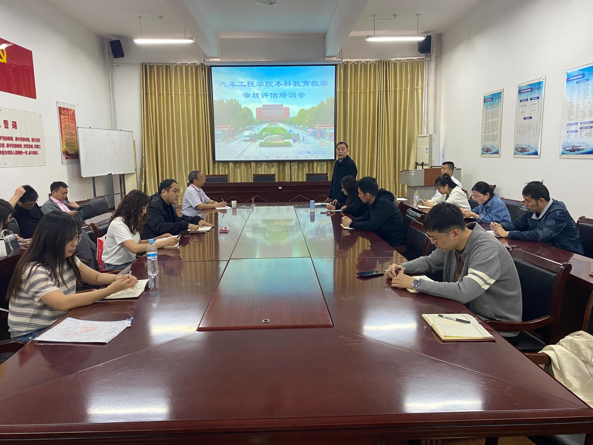 2025年4月23日,汽车工程学院在工程中心D205会议室召开本科教育教学审核评估培训会。校级督导刘圣田出席会议,学院领导、全体教师以及教学管理工作人员参加了此次培训。会议由学院党委书记刘树民主持。