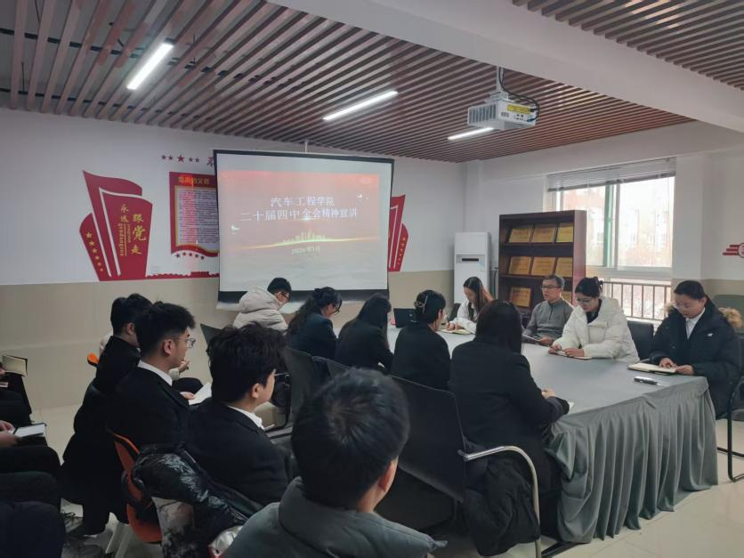 为深入贯彻落实、学深悟透党的二十届四中全会精神,引领全院师生精准把握国家发展的宏伟大势,深刻体悟时代赋予的重大使命,全面领会全会的核心要义和精神实质,2026年1月14日,汽车工程学院于一站式学生社区精心组织开展了党的二十届四中全会精神专题宣讲活动。此次活动由汽车工程学院党委书记周若涛担任主讲,学院师生代表踊跃参与。